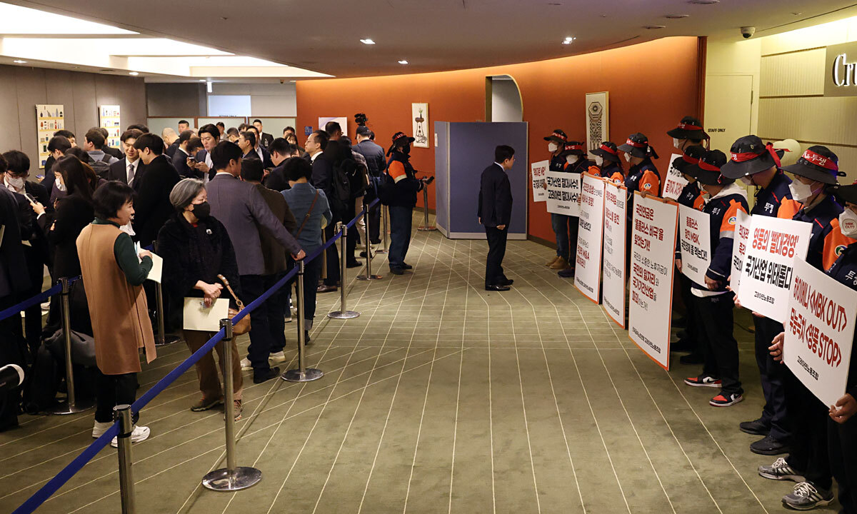 고려아연은 24일 서울 코리아나호텔에서 정기 주주총회를 열었다. 당초 주총 개최시간은 오전 9시였으나 중복 위임장 여부를 확인하는 과정에서 3시간이나 늦어졌다. 지난해 주총에서도 고려아연과 영풍·MBK파트너스 모두에 의결권을 위임하는 일이 벌어져 개최가 지연된 바 있다.