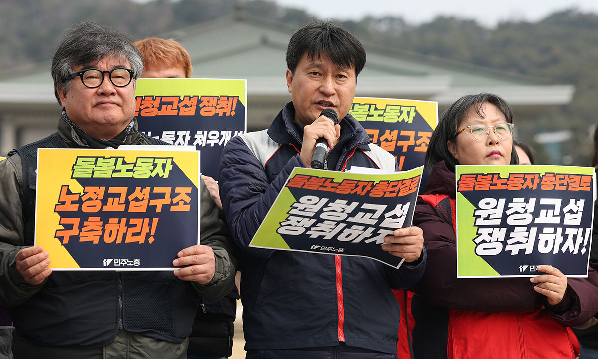 민주노총 돌봄 공동교섭단은 이달 10일 노란봉투법 시행과 동시에 복지부 등 3개 부처에 직접 교섭을 요구했다. 정부가 위탁한 기관에서 공공 돌봄서비스에 종사자로 참여하는 경우 정부가 ‘진짜 사장’이라는 취지다.