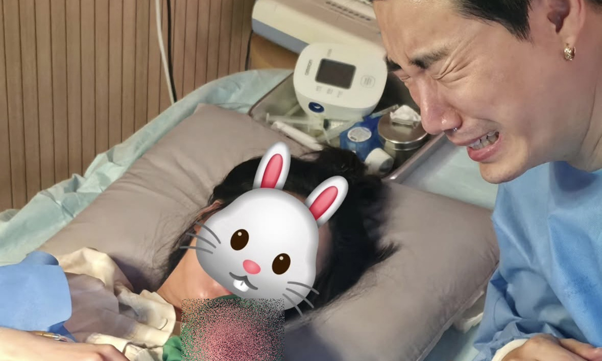함께 공개된 사진에는 갓 태어난 아이를 품에 안은 아내와 그 곁에서 감격에 겨워 오열하는 산이의 모습이 담겼다. 태명은 '째째'다.