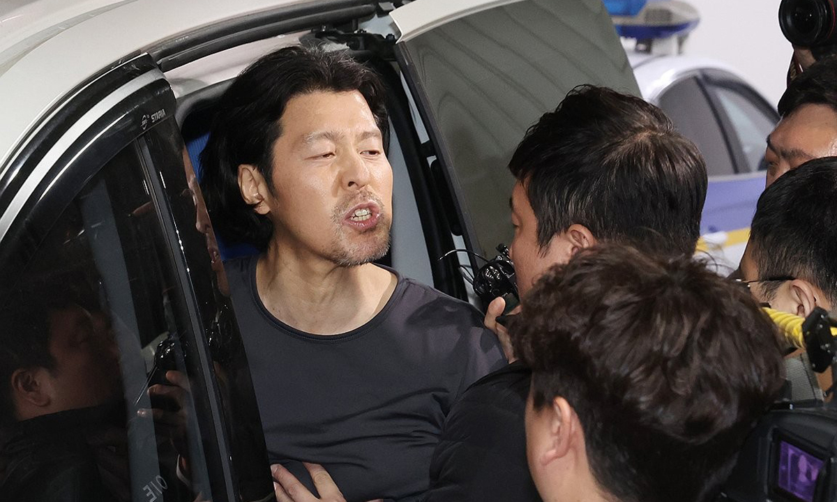 짙은 회색 티셔츠에 수염을 기른 채 마스크를 착용하지 않은 김동환은 이전처럼 고개를 들고 당당하게 호송 차량으로 향했다.