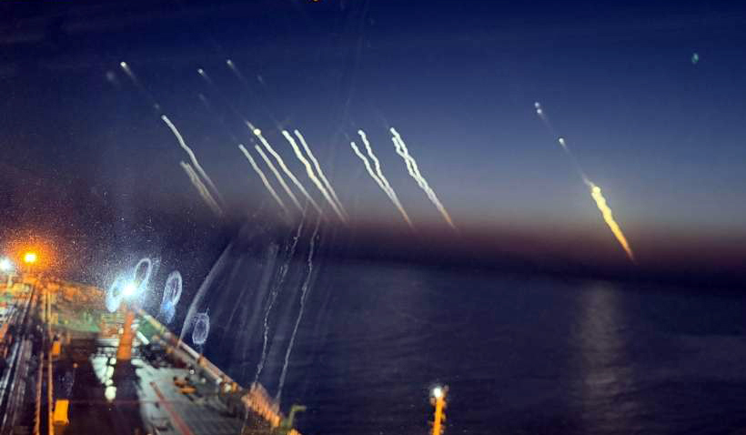 국해상선원노동조합연맹은 호르무즈 해협을 항해 중인 한국 선박의 선원이 미사일 발사 모습이 담긴 사진을 촬영했다고 앞선18일 밝혔다. 사진=선원노련 제공