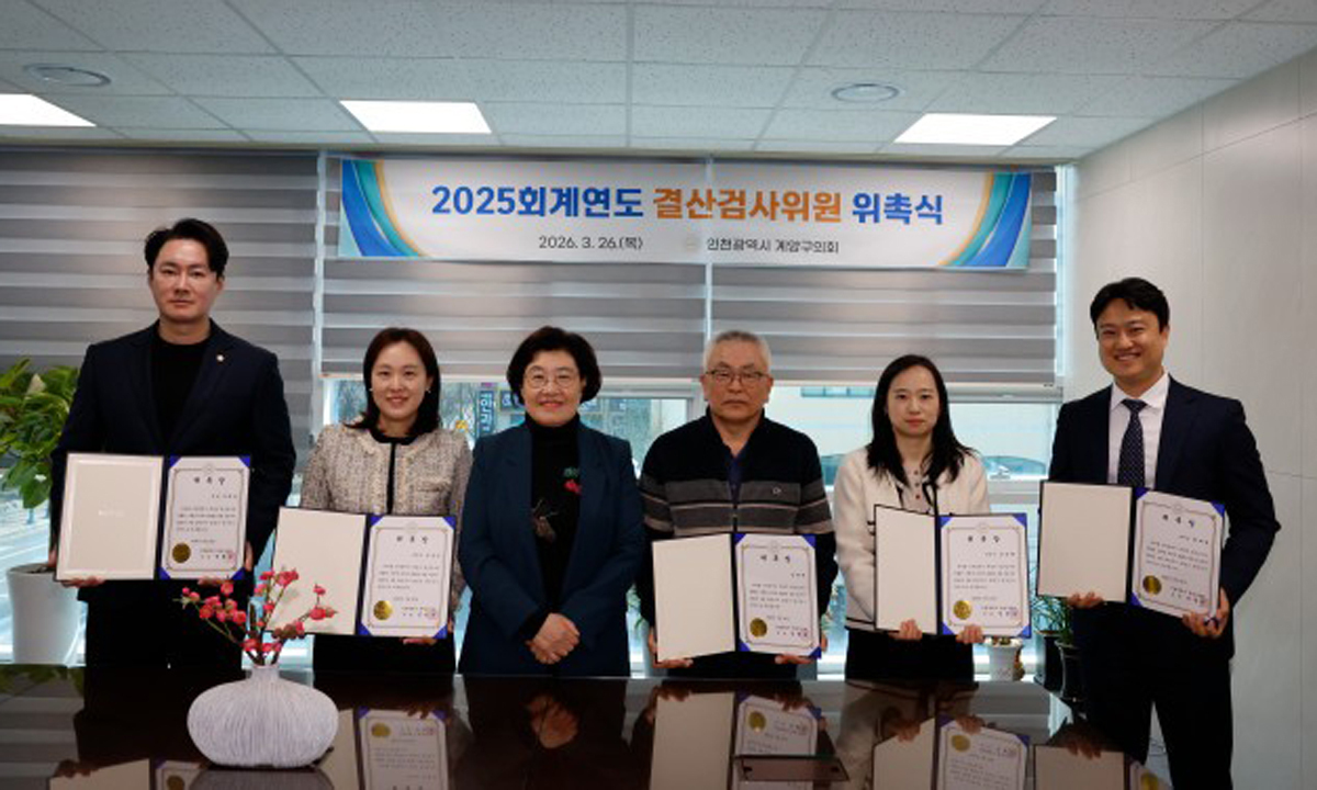 인천 계양구의회가 지난 1년간 집행부의 세입·세출 결산에 더해 성과보고서 등 예산 사용 전반을 면밀히 살펴본다. 구의회는 ‘2025 회계연도 결산검사위원’으로 선임된 5명에게 위촉장을 최근 수여했다고 27일 밝혔다.