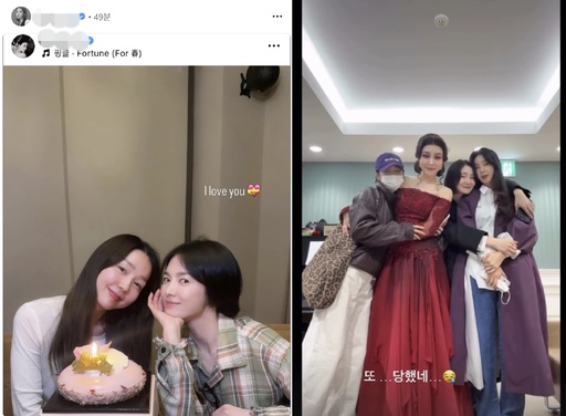 또 이진은 같은 날 송혜교의 게시물을 재게시했다. 게시물 속 송혜교와 이진은 서로 밀착한 채 케이크를 앞에 두고 포즈를 취하고 있다.
