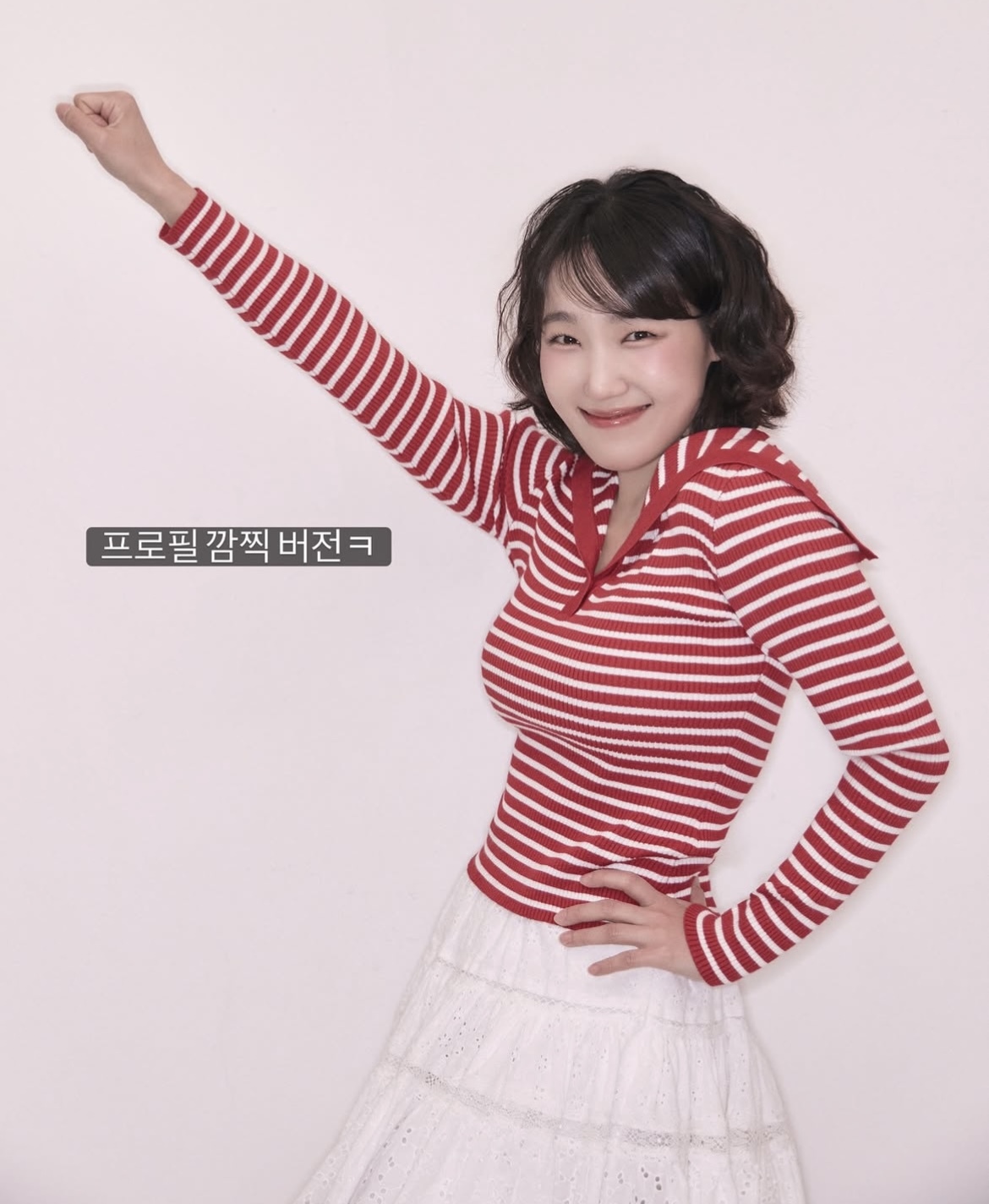 사진은 특히 꾸준한 운동을 통해 체중 감량에 성공한 만큼 갸름해진 얼굴선과 슬림해진 체형이 자연스럽게 시선을 모았다. 날렵한 브이라인 턱선이 이전보다 더욱 또렷해진 모습이다. 매치한 빨간색 스트라이프 니트와 흰색 스커트는 그의 발랄하고 사랑스러운 분위기를 연출했다.