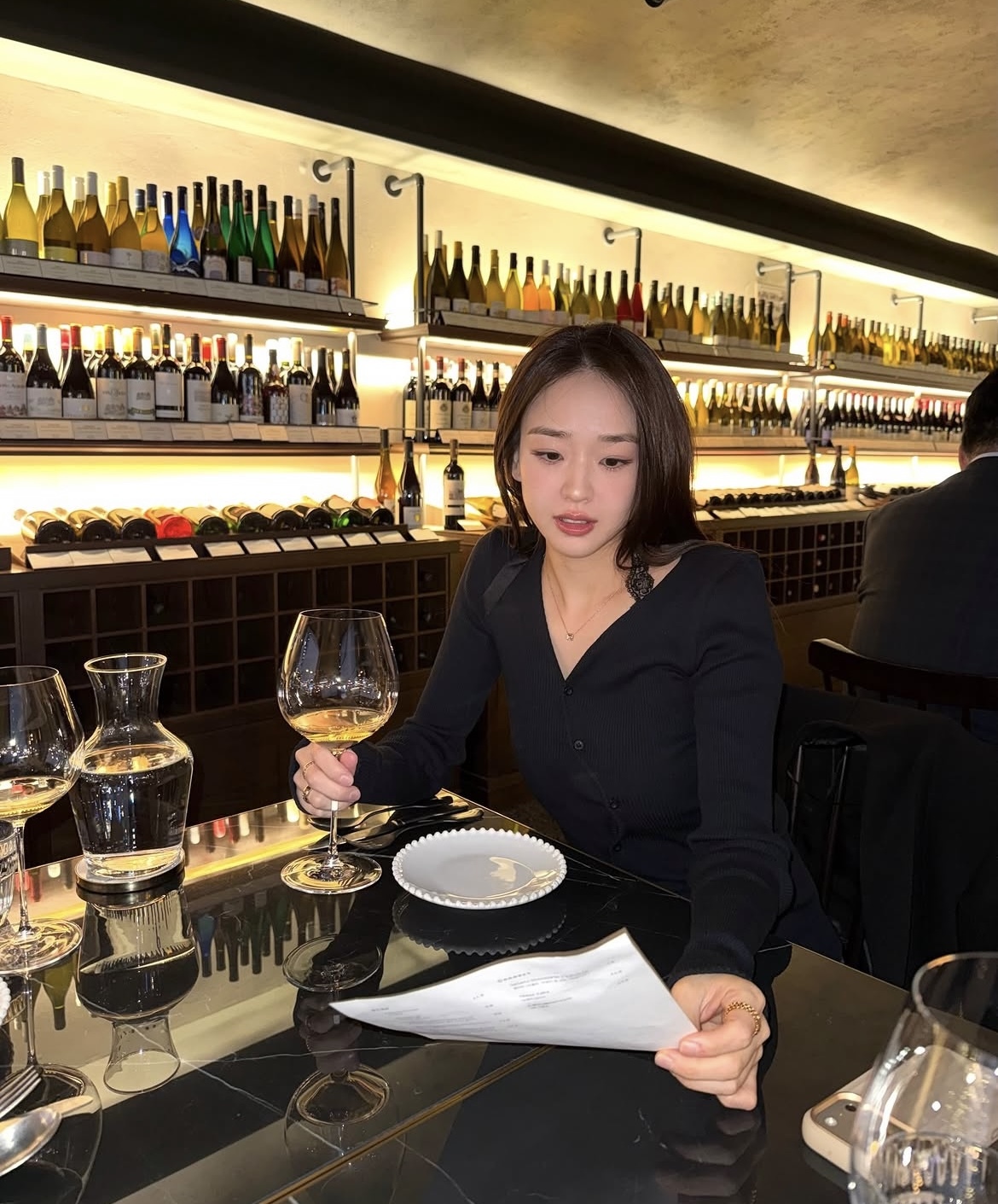 이날 손연재는 브이넥, 가죽 스커트, 검정색 명품 가방을 매치한 ‘올블랙’ 스타일로 시선을 끌었다. 기존의 사랑스러운 이미지와는 또 다른 세련되고 시크한 분위기를 완성했다. 차분하면서도 고급스러운 스타일링은 눈길을 사로잡는다.