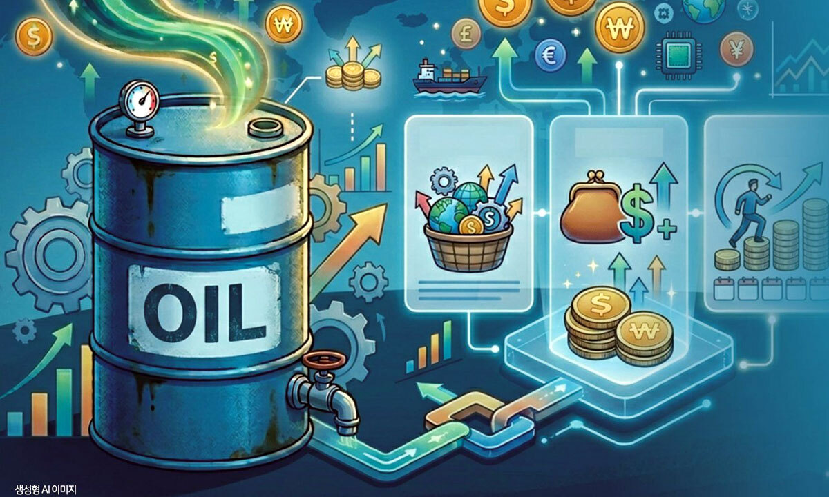 29일 금융권에 따르면 국제 유가는 전쟁 시작 전 약 67달러 수준에서 지난 8일 배럴당 100달러를 돌파했다. 미국 에너지정보청에 따르면 30년 만에 가장 큰 폭의 유가 상승이 단 일주일 만에 일어났다. 이달 들어서는 브렌트유가 배럴당 112∼119달러대까지 치솟아 2022년 이후 최고 수준을 기록하고 있다. 유가 상승은 무역적자 확대와 원화 약세 압력을 동반하며, 시차를 두고 소비자물가와 기업 원가에 반영된다.