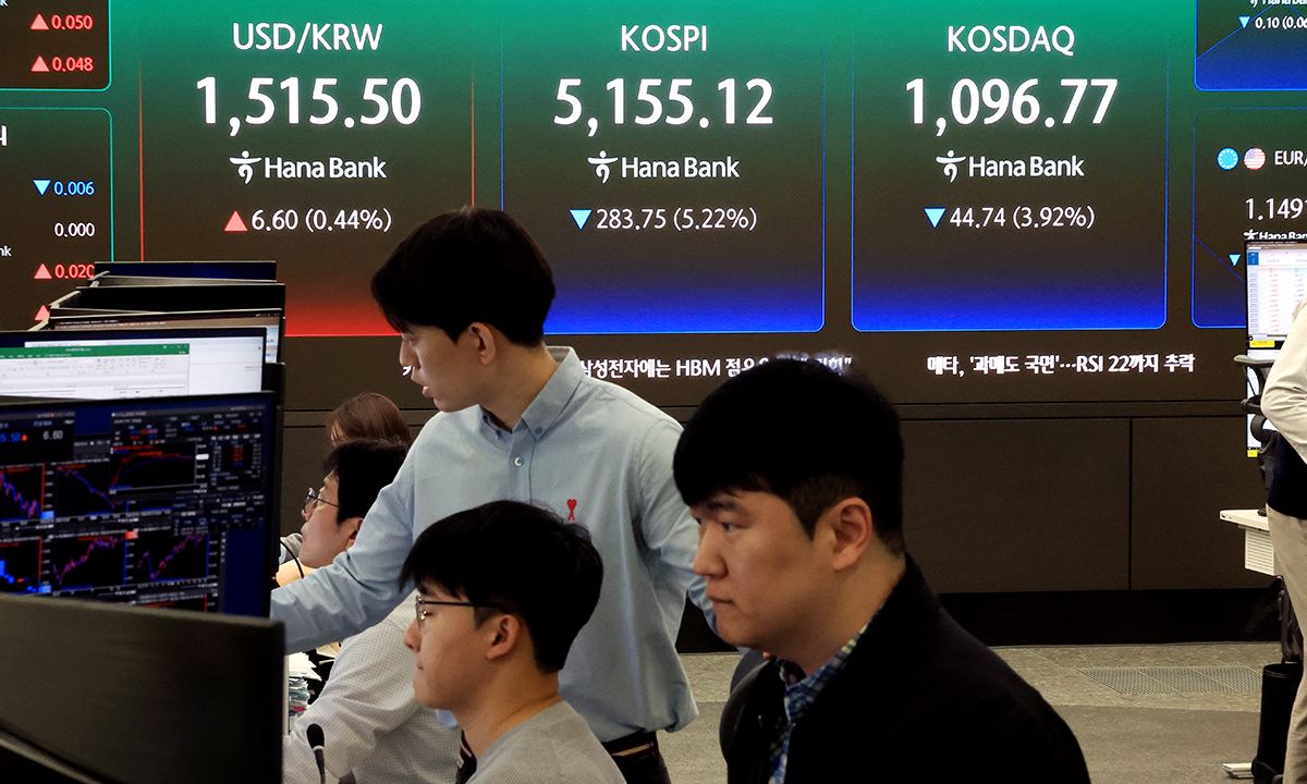 이날 오전 9시 18분 기준 코스피는 전장보다 233.12포인트(4.29%) 내린 5,205.75다.