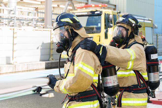 이번 훈련은 전기카트 화재 상황을 가정해 초동 대응과 자위소방대, 자체 소방대의 대응 능력을 점검하고, 유관기관과의 협조체계를 강화하기 위해 마련했다.