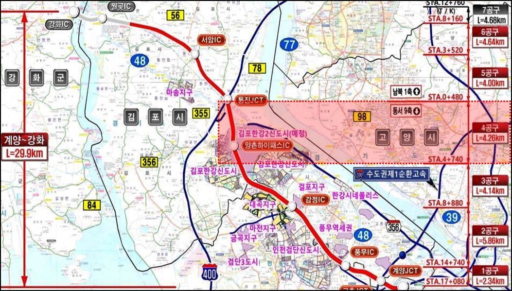 이번 사업은 총 사업비 약 3조3000억원이 투입되는 대형 프로젝트로, 총 연장 29.9㎞, 왕복 4~6차로 규모로 조성된다. 전체 구간은 7개 공구로 나뉘어 추진되며 2032년 개통을 목표로 한다.