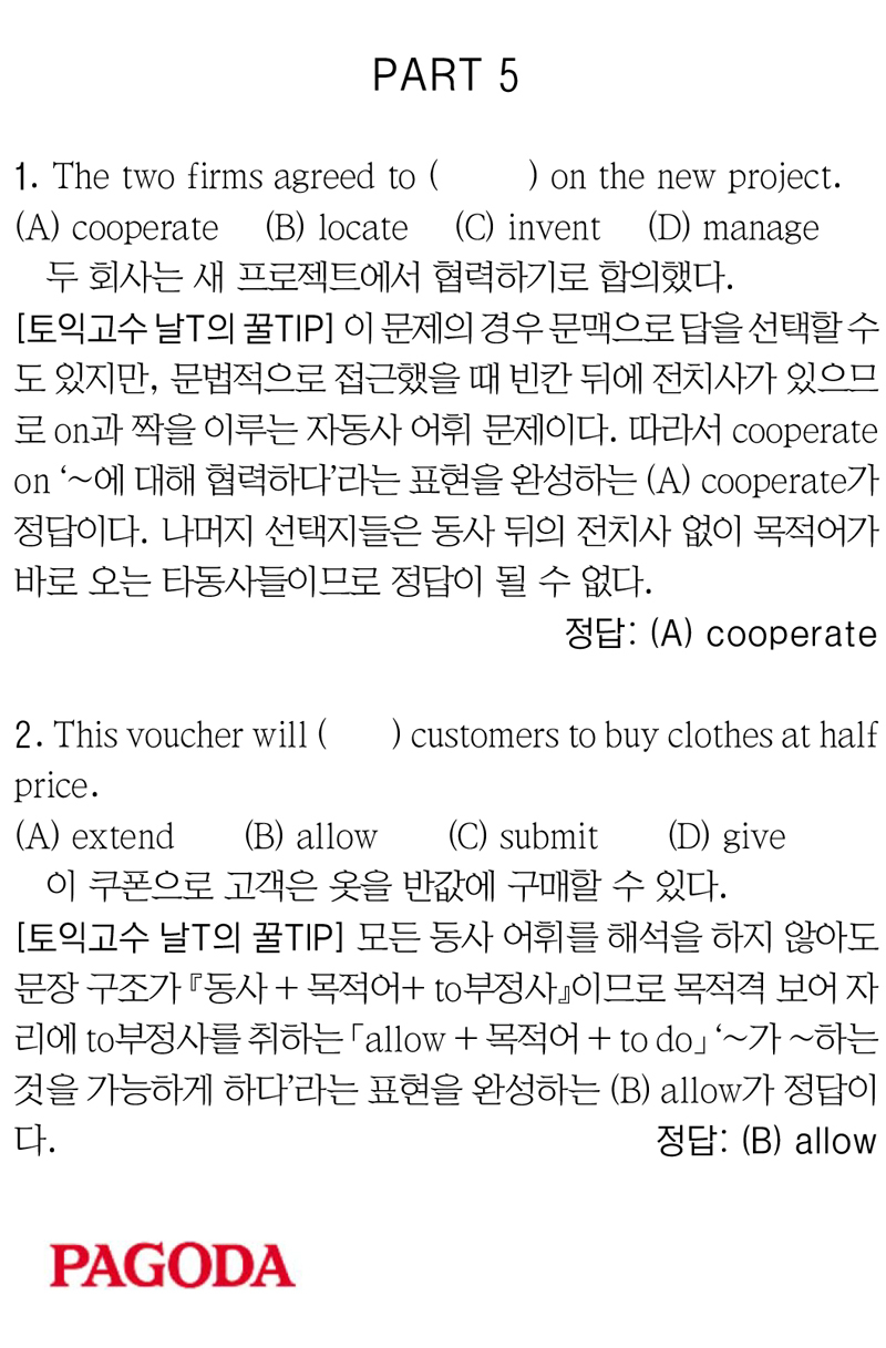 [파고다 강남 끝토익 RC김나래] PART 5