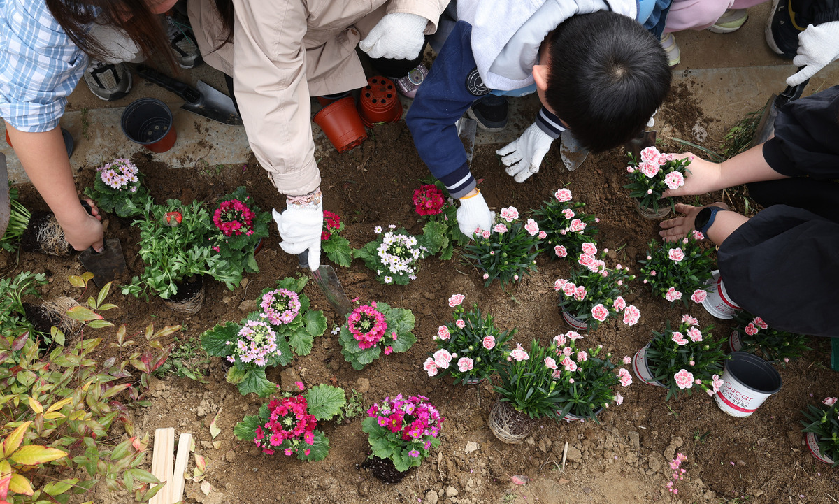 30일 서울 마포구 국화정원에서 '제81회 식목일 기념 릴레이 정원만들기 행사'에 참가한 구민들이 꽃을 심고 있다. 마포구는 국화정원 등 4개소에서 구청, 동주민센터, 주민, 직능단체 등 420여명이 동별 릴레이 형식으로 주민과 함께 나무와 꽃을 식재했다. 식재수량은 에메랄드그린 등 3500여주와 수선화 등 4500여본이다.