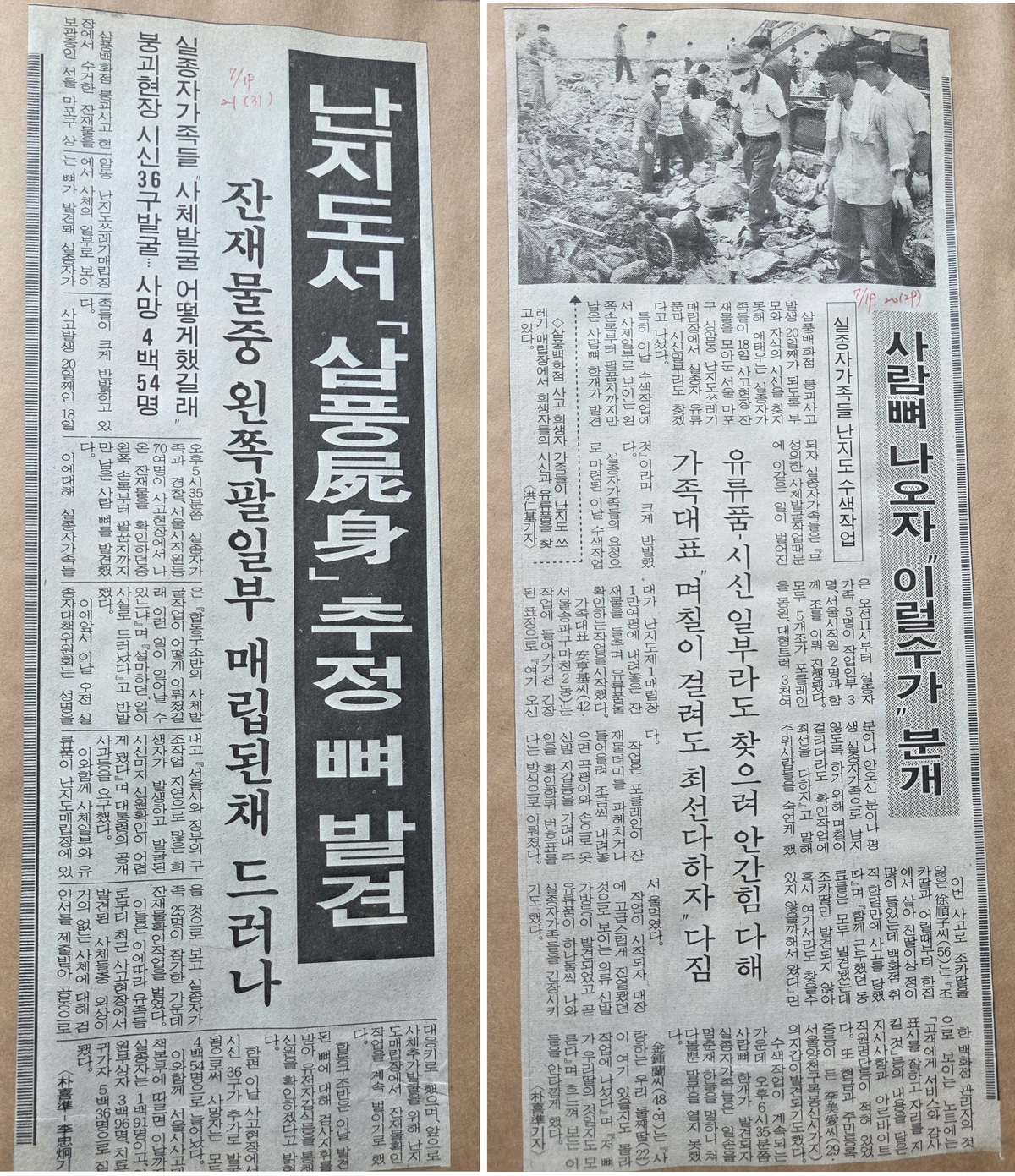 1995년 6월29일 붕괴한 삼풍백화점 현장 수습 과정이 그랬다.