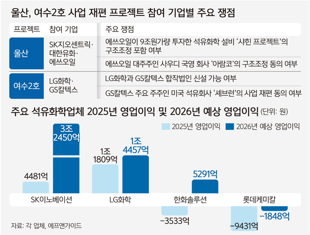 LG화학과 GS칼텍스가 참여한 여수2호 상황도 녹록지 않다. 지분 구조와 사업 재편 방식 등을 둘러싼 이견으로 협상이 지지부진하다.
