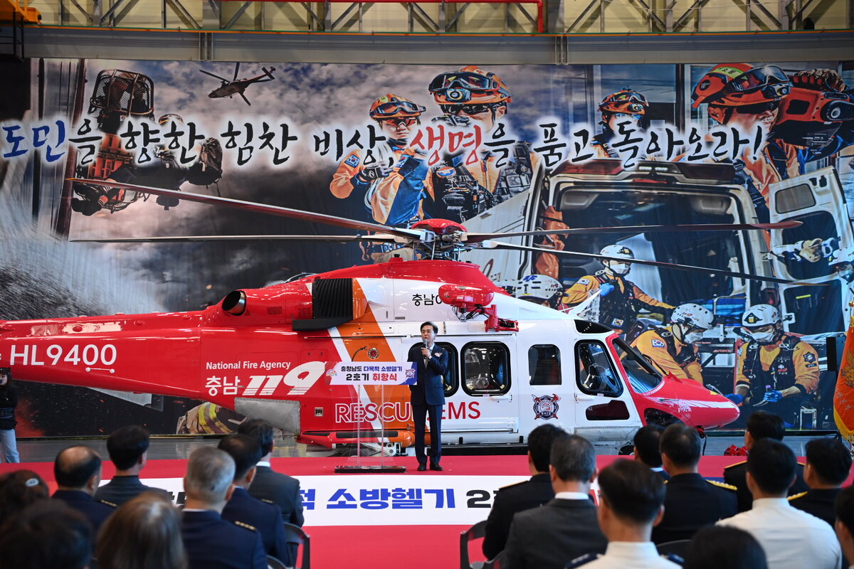 김태흠 충남지사는 “충남은 산림과 도서지역이 많고 대형병원 접근성이 떨어지는 ‘재난안전 사각지대’가 존재한다”며 “이번 2호기는 하늘의 소방차이자 응급실로서 도민 생명과 안전을 지키는 핵심 역할을 하게 될 것”이라고 말했다. 이어 “두 대의 헬기가 동시에 출격하는 체계를 갖춘 만큼 더 많은 생명을 구할 수 있을 것”이라며 “도민이 체감하는 안전 수준을 끌어올리겠다”고 강조했다.