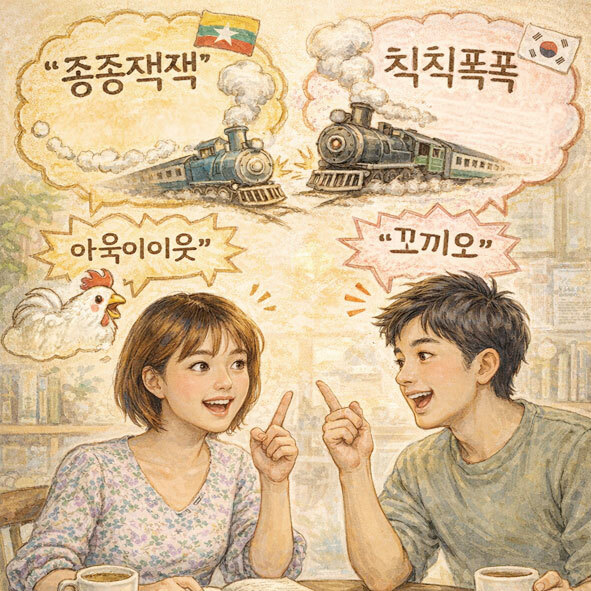 이러한 차이는 단순한 번역의 문제가 아니다. 인간의 청각 구조는 같지만 각 언어는 고유한 음운체계를 바탕으로 소리를 재구성한다. 한국어는 ‘칙’이나 ‘폭’처럼 짧고 강한 파열음을 중심으로 리듬을 만들고, 미얀마어는 더 부드럽고 반복적인 음절 구조를 통해 표현하는 경향이 있다. 여기에 어린 시절부터 학습된 언어습관이 더해지면서 특정 표현이 ‘자연스러운 정답’처럼 굳어지게 되는 것이다.