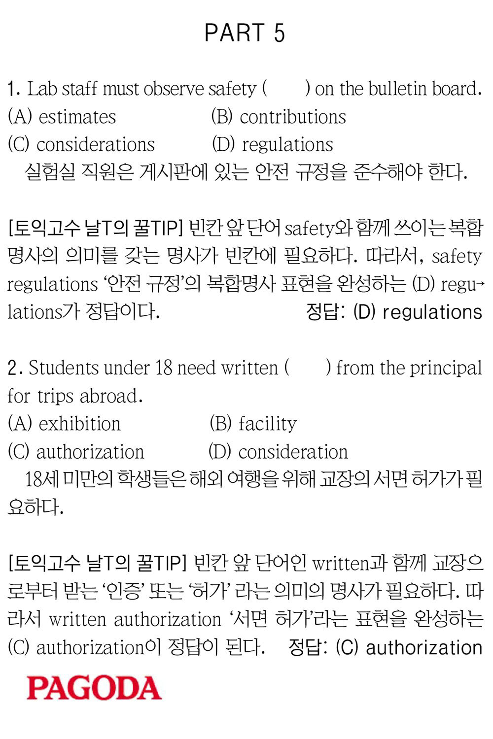 [파고다 강남 끝토익 RC김나래] PART 5