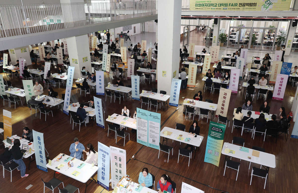 1일 서울 서대문구 이화여자대학교에서 열린 '제30회 대학원 페어(FAIR) 및 전공박람회'를 찾은 학생들이 상담을 하고 있다.