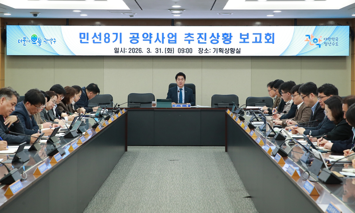 구는 지난달 31일 청사에서 박준희 구청장 주재로 ‘민선 8기 공약사업 추진 상황 보고회’를 열고 공약사업 전반의 이행 현황을 점검했다.