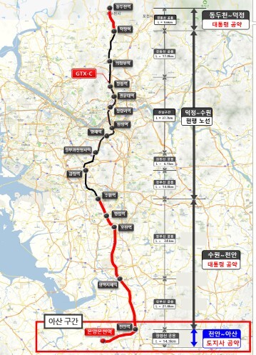 GTX-C 노선은 경기 양주시 덕정역을 출발해 서울 청량리, 왕십리역, 삼성역 등을 지나 수원역까지 연결하는 국가철도망 사업으로 총 86.5㎞를 운행한다. 이 철도가 개통되면 △덕정~삼성역 29분 △수원~삼성역까지 27분만에 이동이 가능해 서울로 출퇴근하는 대중교통 이용객의 통행시간이 대폭 줄어들 전망이다.