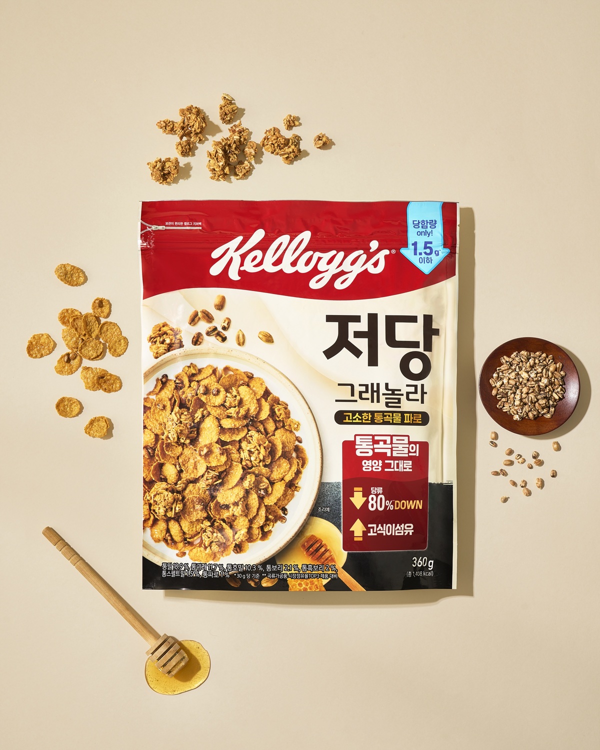 이 흐름을 보여주는 대표 사례 중 하나가 켈로그다. 이번에 선보인 ‘저당 그래놀라’는 당류를 약 80% 낮춰 제품 1회 섭취량 기준 1.5g 수준으로 설계했다. 단순히 덜어낸 제품이 아니라, 통곡물 7종과 식이섬유를 전면에 내세운 ‘대체 설계’가 핵심이다.
