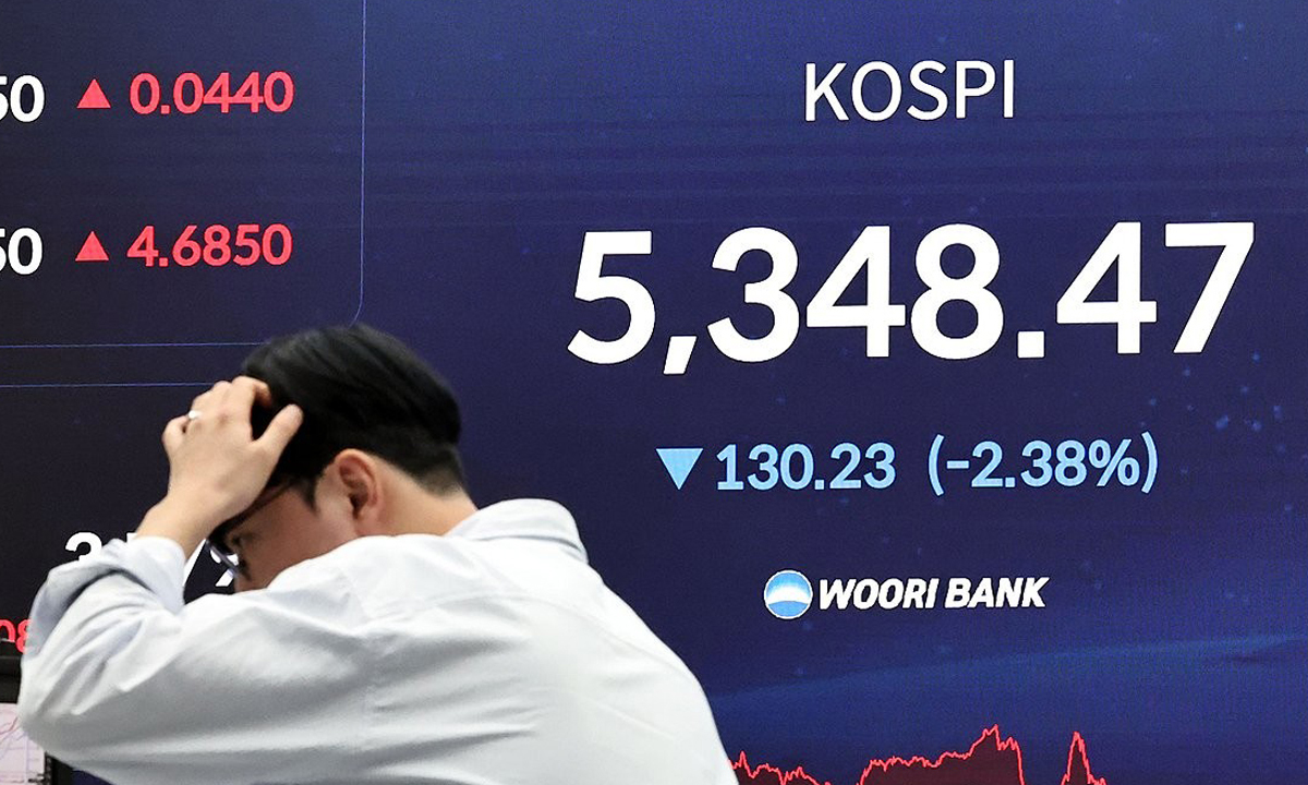 2일 오전 도널드 트럼프 미국 대통령의 연설이 진행된 가운데 코스피가 장중 급락 전환해 5,300선마저 내줬다.