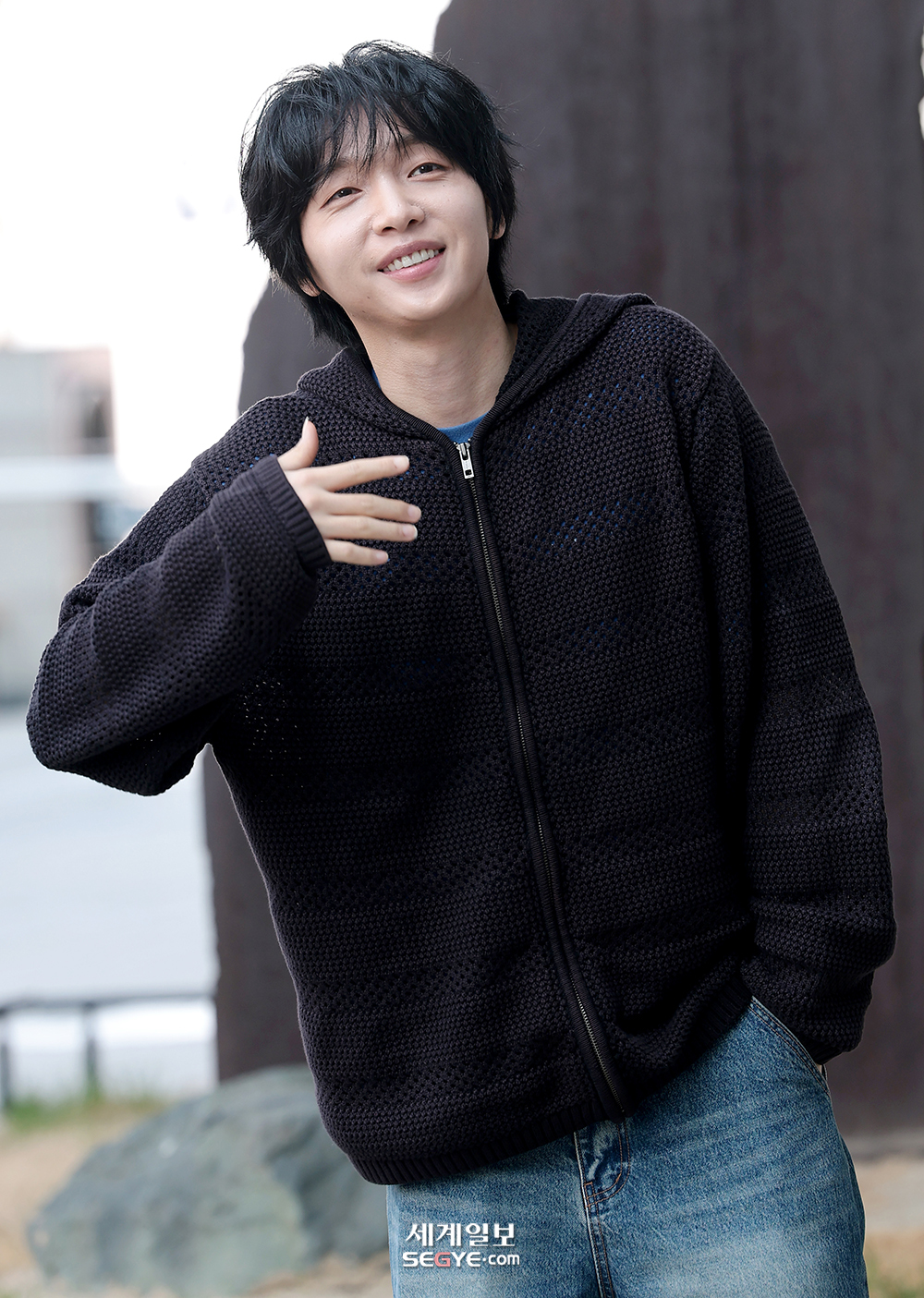가수 정세운이 SBS 파워FM '12시엔 주현영' 출연을 위해 2일 오후 서울 양천구 SBS에 도착해 포즈를 취하고 있다.