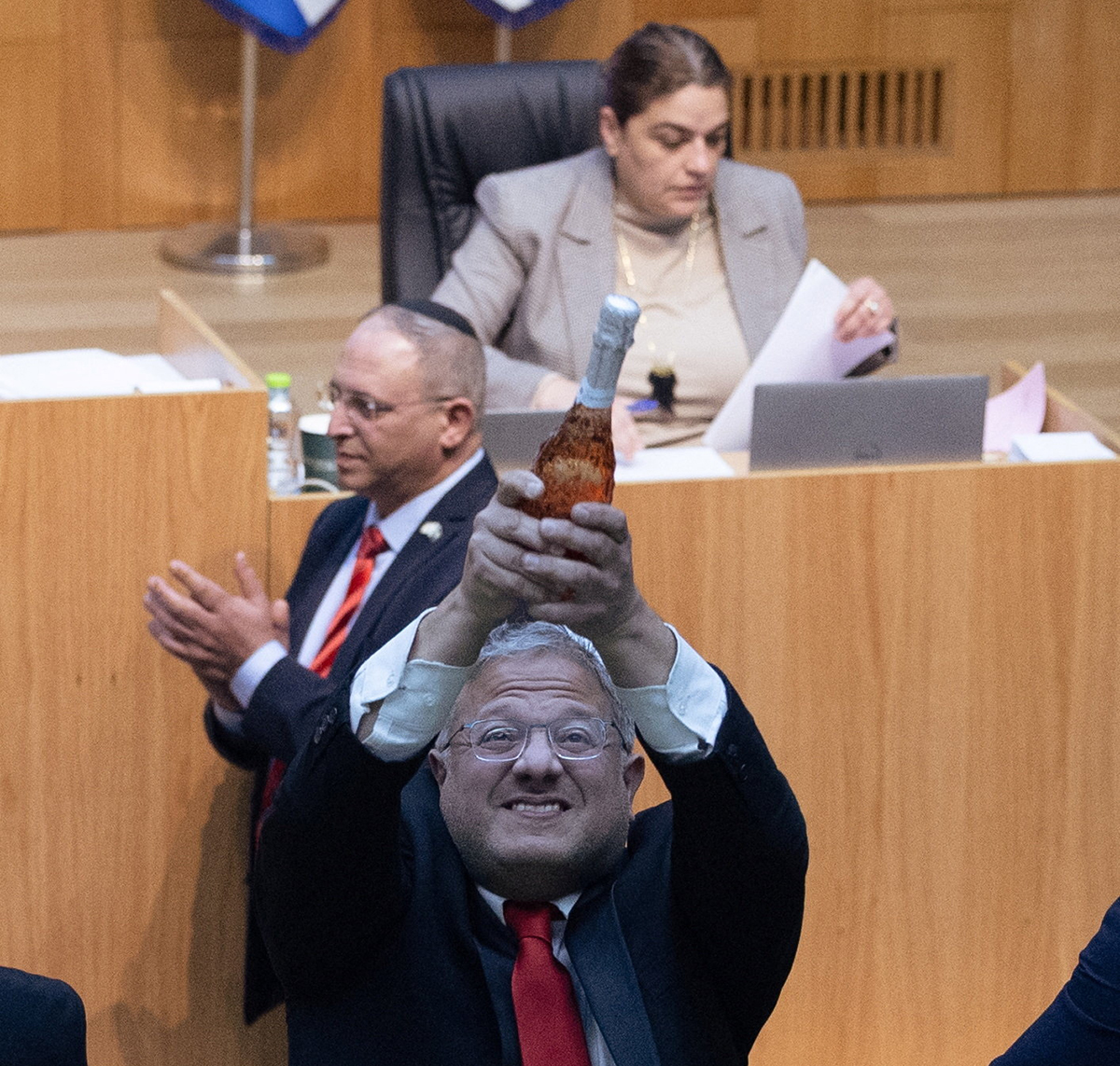 지난달 30일(현지시간) 이스라엘 예루살렘의 이스라엘 의회(크네세트)에서 테러 혐의로 군사법원에서 유죄 판결을 받은 팔레스타인인들에게 사형을 기본 형량으로 규정하는 법안이 통과됐다. 극우 성향 이타마르 벤그비르 국가안보부 장관은 술병을 들며 활짝 웃는 표정으로 법안 통과를 축하했다. 이 법에 따르면 사형 판결은 판사 과반의 동의만으로 가능하다. 피고인의 항소권도 인정되지 않는다. 이 법은 사형 선고 대상을 ‘이스라엘 국가의 존재를 부정할 목적으로 의도적인 살인을 저지른 자’로 명시해 사실상 팔레스타인인만을 겨냥했다는 비판을 받는다. 이스라엘은 1962년 나치 전범 아돌프 아이히만의 교수형 이후 지금껏 사형을 집행한 적이 없다.