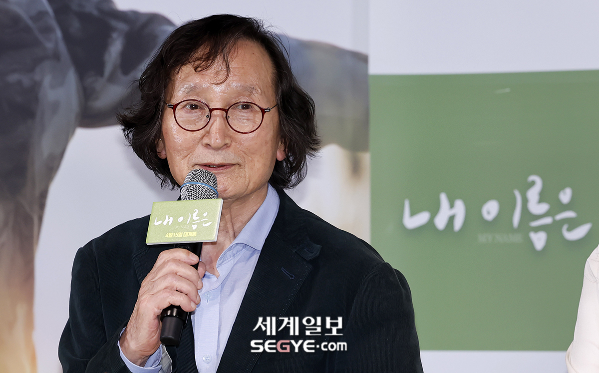 정지영 감독이 2일 오후 서울 용산구 CGV 용산아이파크몰에서 열린 영화 ’내 이름은’ 언론시사회에 참석해 인사말을 하고 있다.