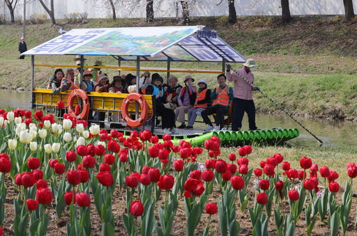 2일 서울 서초구 양재천에서 열린 ‘양재천 천천투어 어르신 하루여행’에 참가한 어르신들이 도심 속 이색 뗏목 체험을 하고 있다. 서초구는 4월부터 10월까지 양재천에서 자연을 체험하며 여유로운 시간을 즐길 수 있는 생태체험 프로그램 ‘양재천 천천투어’를 매일 2회(오전 10시, 오후 2시) 운영한다.