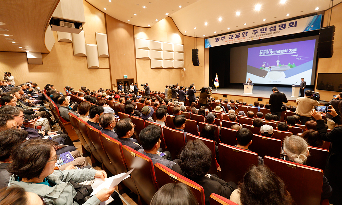 국방부는 2일 “이번 예비이전후보지 선정은 광주 군공항 이전 절차의 첫 단계로서, 광주시·전남도·무안군 등 관계 기관과 긴밀한 협의를 거쳐 선정했다”고 밝혔다. 국방부는 전날 무안 승달문화예술회관에서 ‘광주 군공항 이전 주민 설명회’를 열고 △군공항 이전 절차 △광주공항 국내선 이전 △이전 지역 지원 사업 △정부 정책 지원 방안 등을 제시했다.