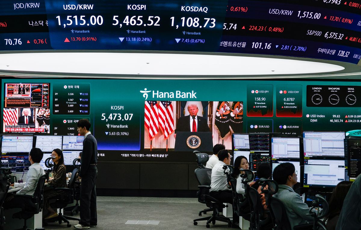 미국의 대이란 강경 발언에 종전 기대감이 꺾이면서 2일 국내 금융시장이 또다시 출렁였다. 원·달러 환율은 하루 만에 다시 1520원대로 올라섰고, 코스피와 코스닥 시장은 전날의 급등분을 반납하며 4~5%대 급락했다.