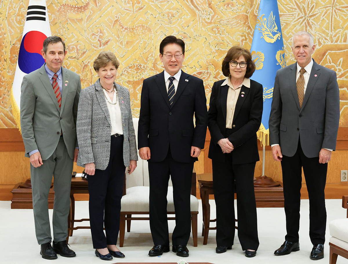 이재명 대통령은 2일 미국 상원의원 대표단을 만나 “(한국이) 군사비 증액뿐만 아니라 전시작전권 환수를 통해 미국의 부담을 줄이고, 최소한 한반도 인근에서는 우리가 자체적으로 동북아 지역의 안전과 평화를 지켜내겠다는 생각을 갖고 있다”고 밝혔다.
