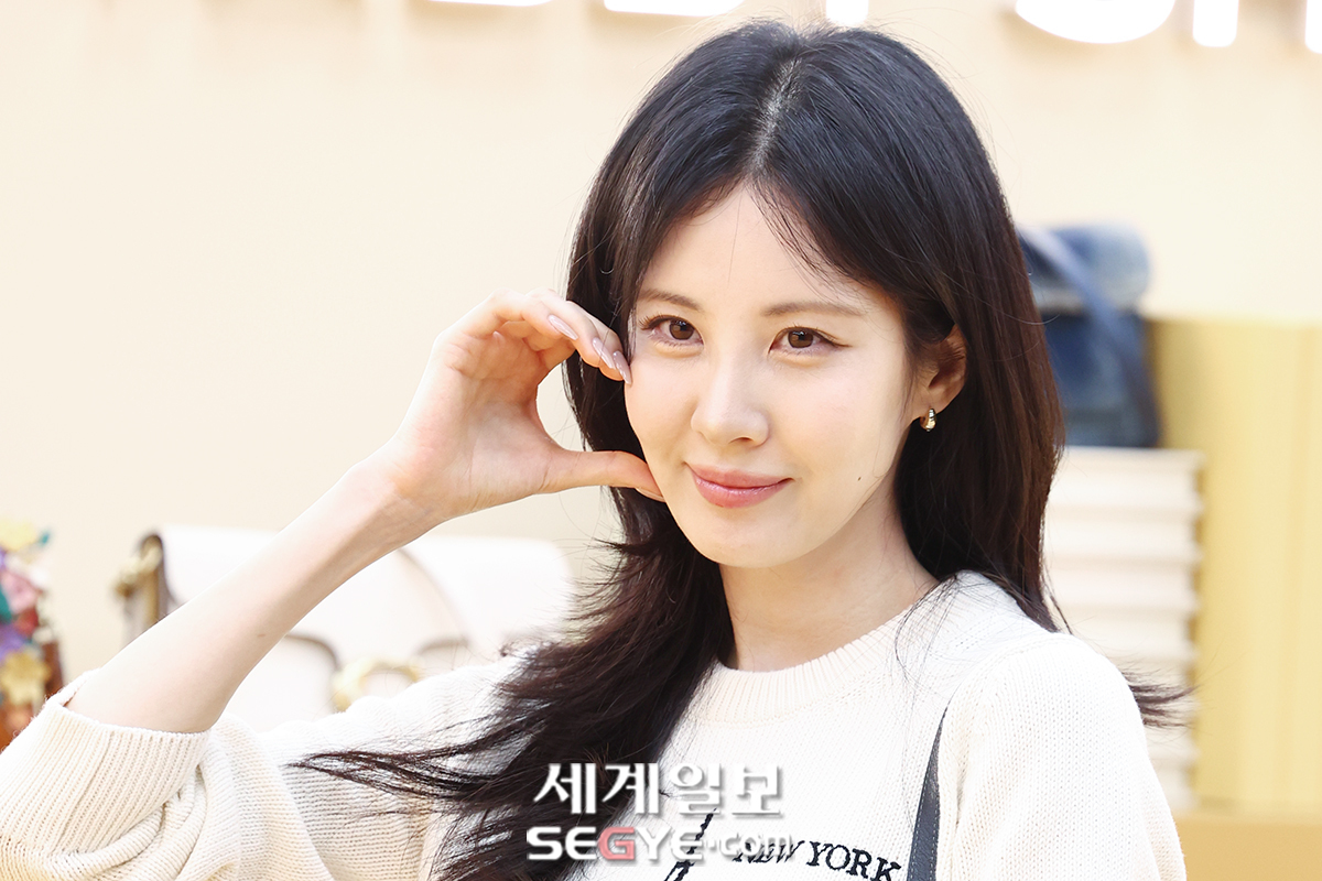 가수 겸 배우 서현이 3일 오전 서울 영등포구 현대백화점 더현대 서울에서 진행된 한 럭셔리 브랜드 팝업 오픈 기념 행사에 참석해 포토타임을 갖고 있다.