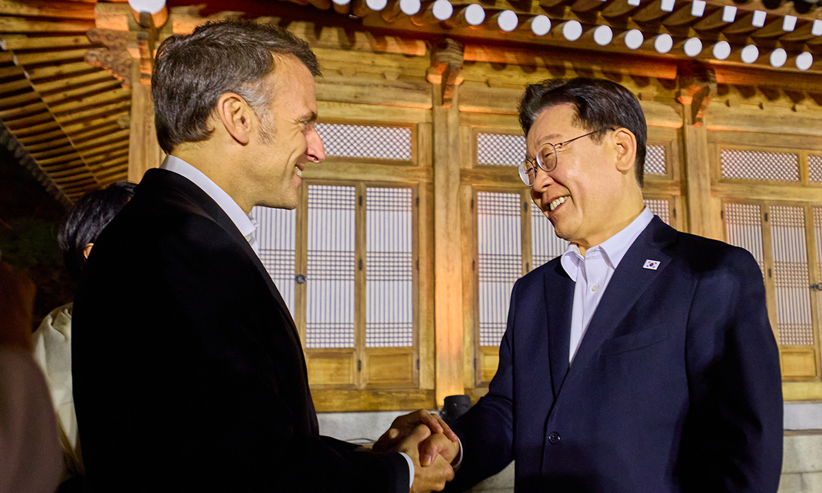 이재명 대통령은 3일 오전 청와대에서 한국을 국빈 방한한 에마뉘엘 마크롱 프랑스 대통령과 정상회담을 갖는다.