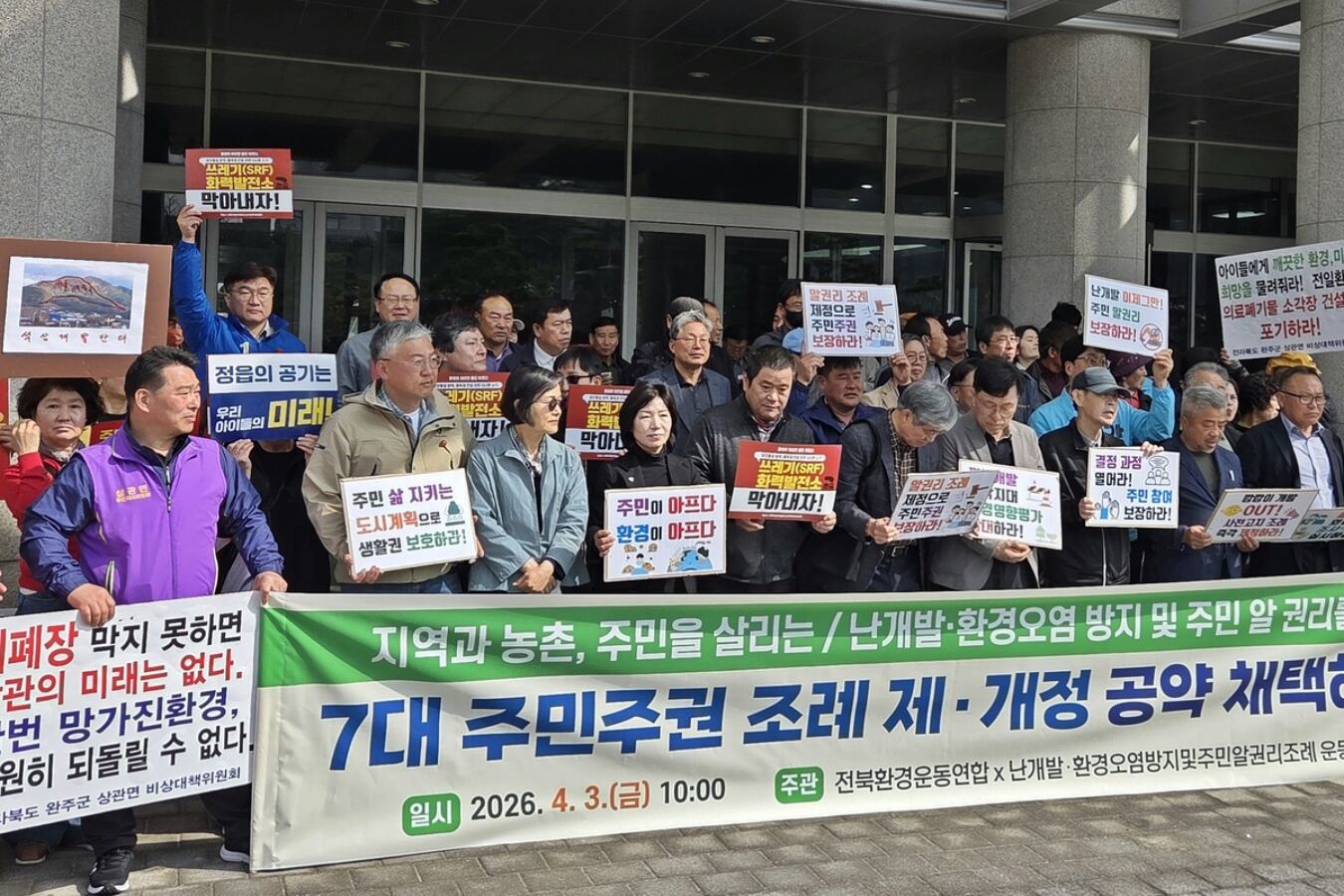 이날 현장에는 전북지사 출마 예정자 측 관계자와 일부 정당 인사들도 참석해 조례 제안서를 전달받았다. 환경시민사회 단체는 더불어민주당 등 주요 정당이 해당 조례를 당론으로 채택할 것을 요구하고 있다. 운동본부 관계자는 “이번 지방선거는 난개발 문제를 해결할 마지막 기회”라며 “정치권이 주민의 생명과 환경을 지키는 데 책임 있게 응답해야 한다”고 밝혔다.