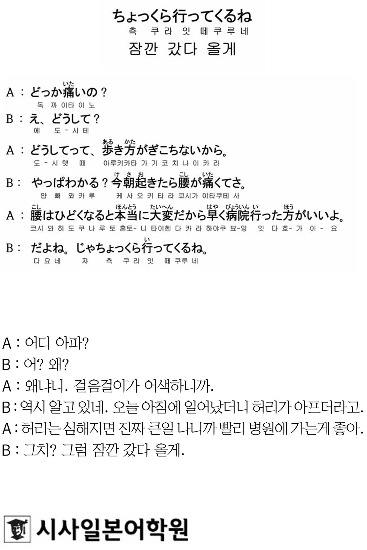 [시사일본어학원의 초단기 일본어 회화] 잠깐 갔다 올게