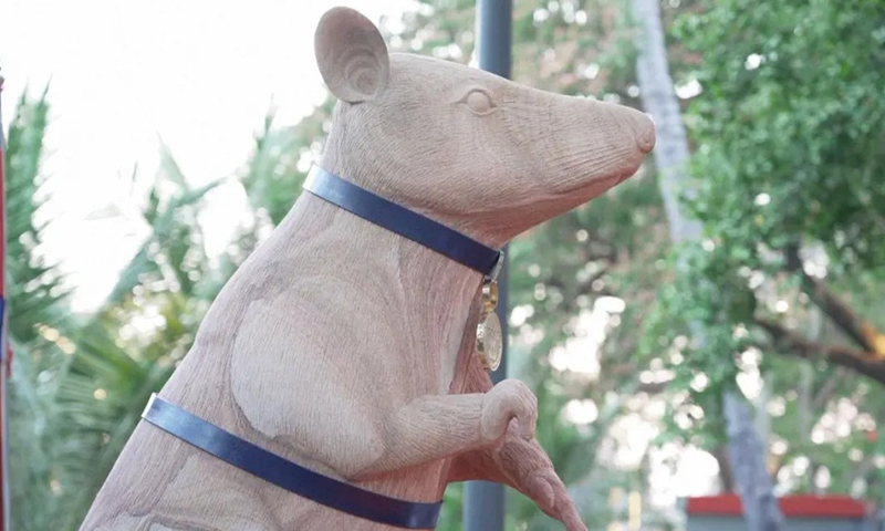 5일(현지시간) BBC 방송에 따르면 캄보디아 중서부 시엠립(시엠레아프)에 바로 이 아프리카주머니쥐의 석상이 들어섰다. 이는 ‘마가와’(Magawa)라는 이름의 지뢰 제거용 쥐를 모델로 삼아 만든 돌조각이다. 4월4일 ‘국제 지뢰 경계의 날’에 맞춰 지난 3일 제막식을 갖고 대중에 공개됐다.