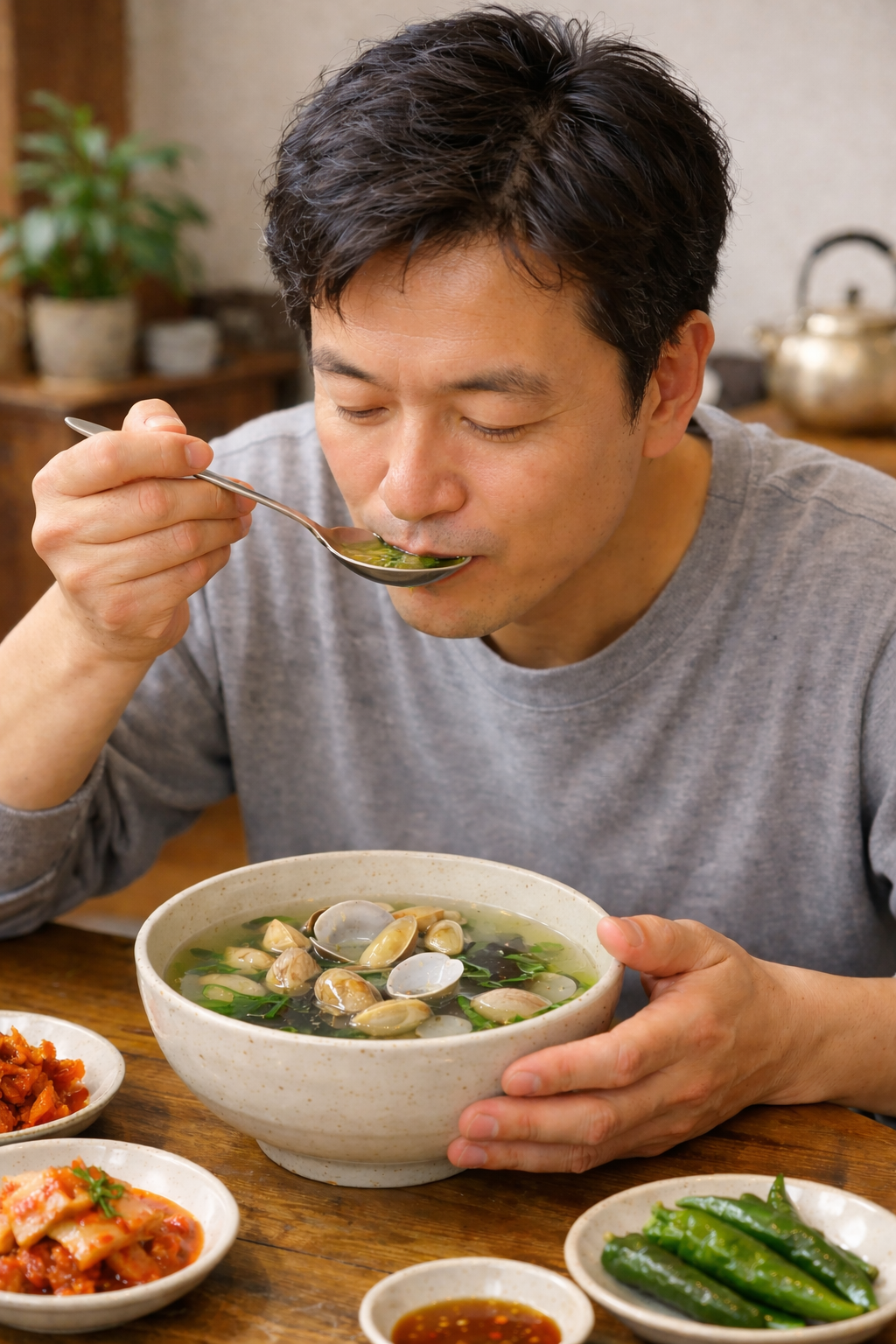이후 다진 마늘과 대파를 넣고 한소끔 더 끓인다. 간은 소금으로 최소한만 맞추는 것이 포인트다. 바지락 자체에서 우러나는 감칠맛이 충분하기 때문에 과도한 양념은 오히려 풍미를 해칠 수 있다.