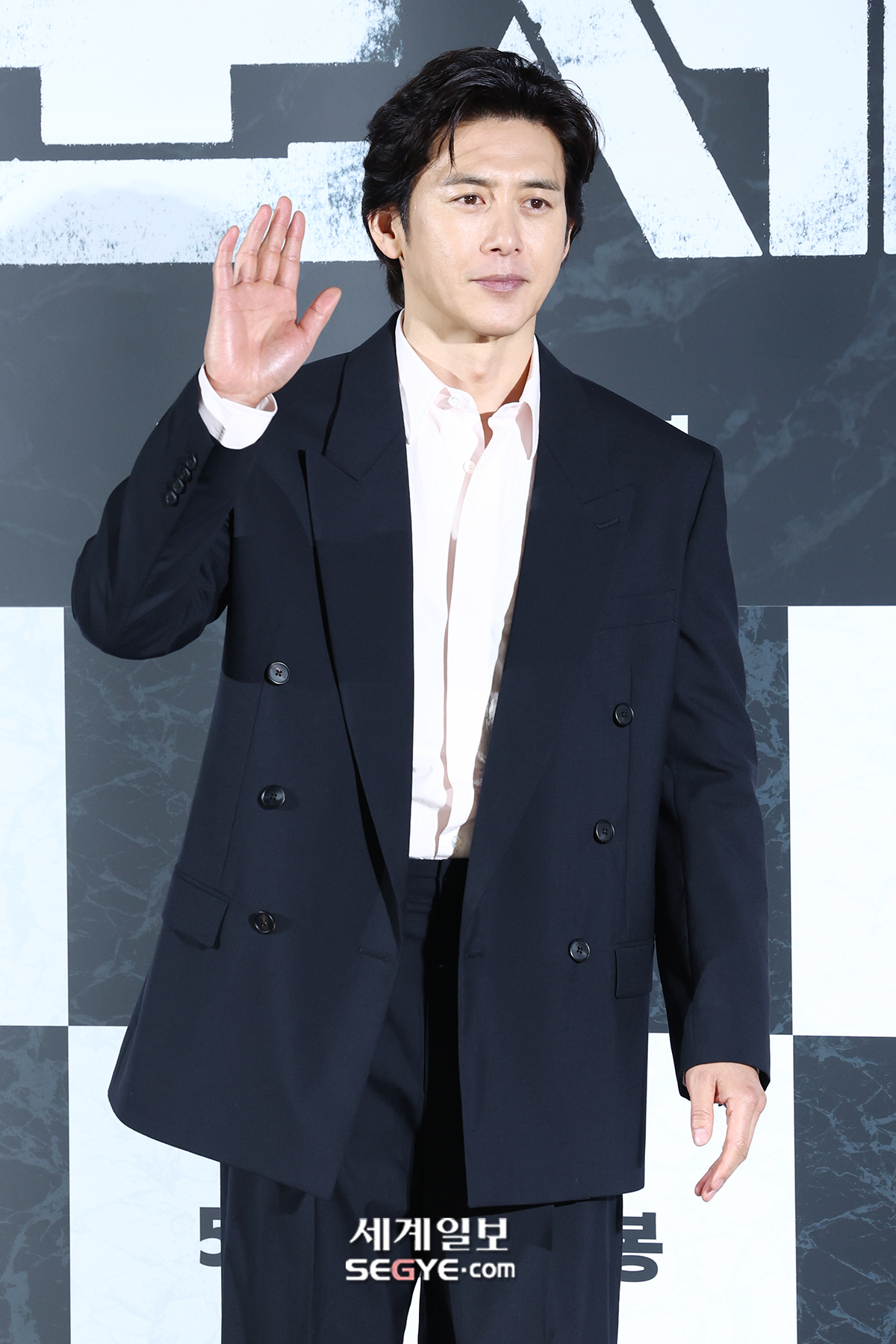 배우 고수가 6일 오전 서울 용산 CGV에서 열린 영화 ’군체’의 제작보고회에 참석해 포즈를 취하고 있다.