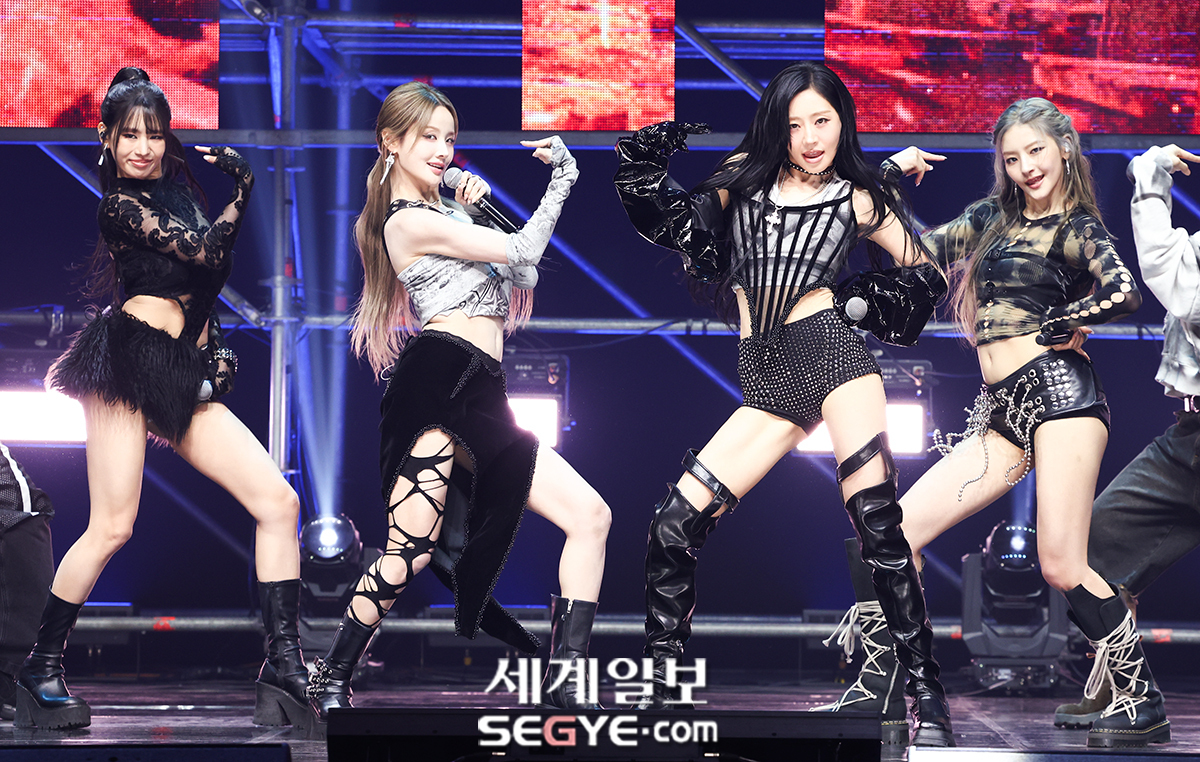 그룹 키스오브라이프(KISS OF LIFE)가 6일 서울 한남동 블루스퀘어에서 진행된 새 싱글 'Who is she(후 이즈 쉬)' 쇼케이스에 참석해 열띤 공연을 펼치고 있다.