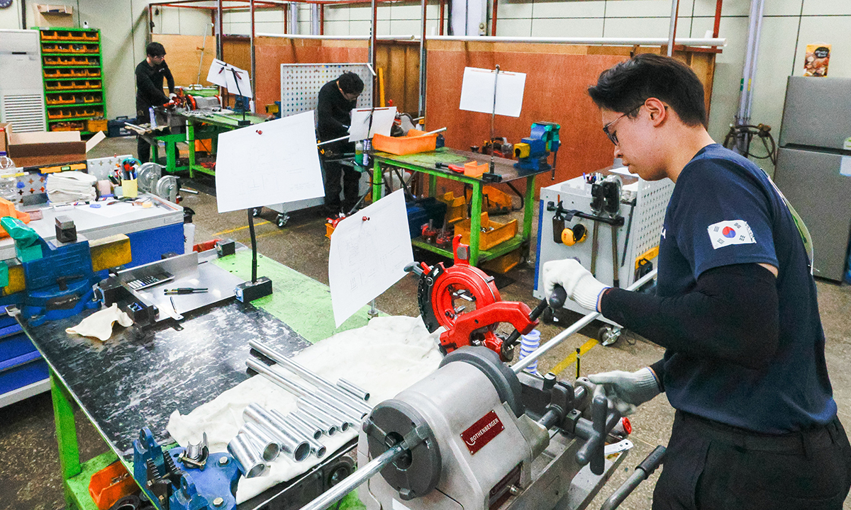6일 서울 동작구 서울공업고등학교에서 ‘2026년 서울시 기능경기대회’가 열린 가운데 수험생들이 배관 시험을 치르고 있다. 우수 기능인을 발굴하는 전국기능경기대회 서울대표를 선발하는 서울시 기능경기대회는 자동차정비, 용접, 산업용 드론제어, 제과, 제빵 등 44개 직종에서 392명이 대회에 참가해 기량을 겨룬다.