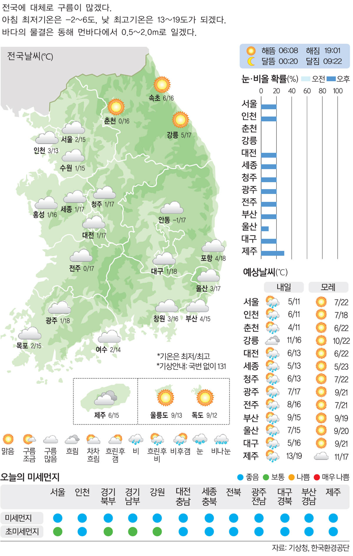 [8일의 날씨] 큰 일교차에 '감기 주의보'