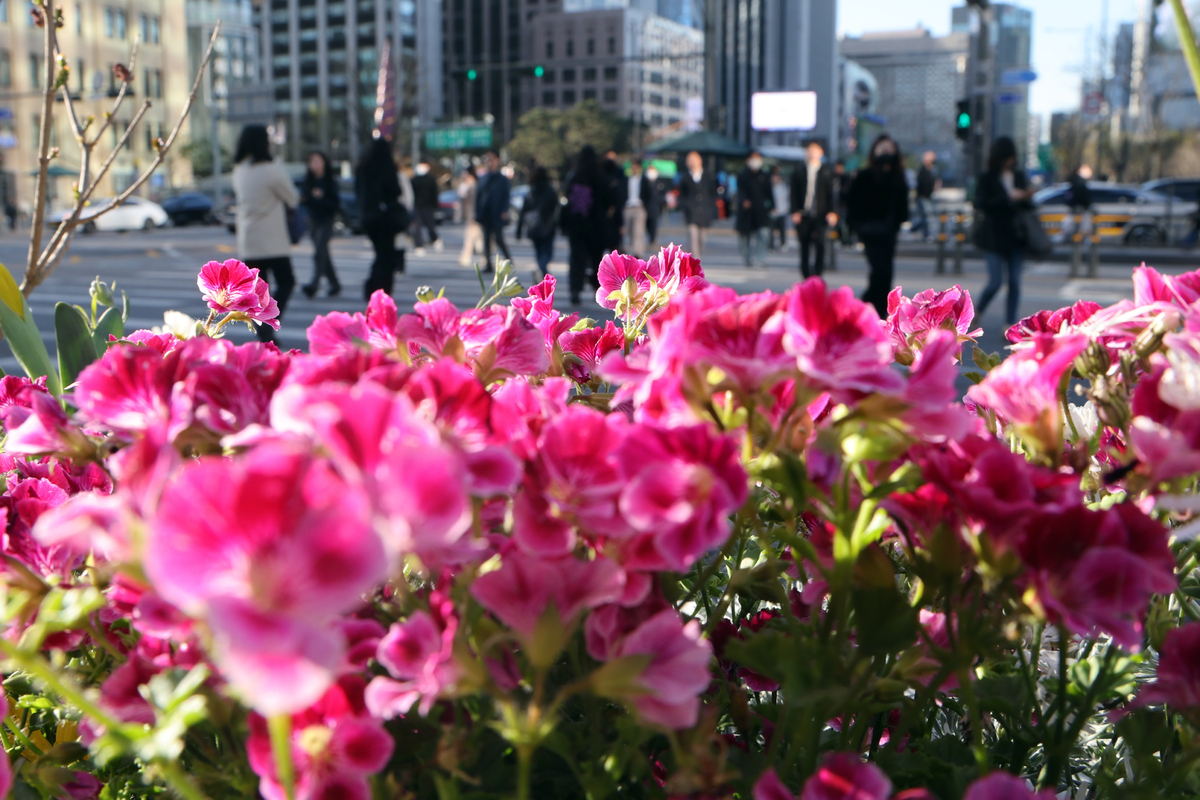 꽃샘추위가 찾아온 7일 오전 서울 광화문 사거리에서 출근길 시민들이 발걸음을 재촉하고 있다. 뉴스1