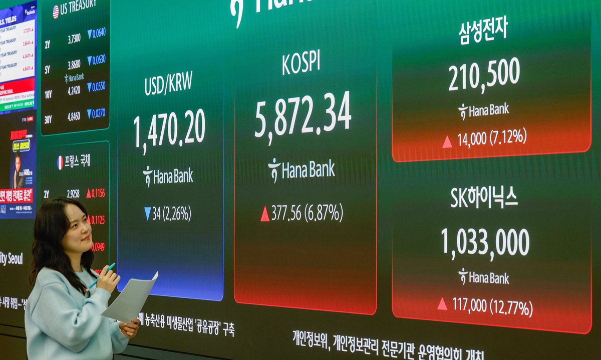 미국과 이란이 휴전에 사실상 합의한 가운데 8일 코스피가 장 초반 5%대 급등하며 5,800선 안팎을 맴돌고 있다.