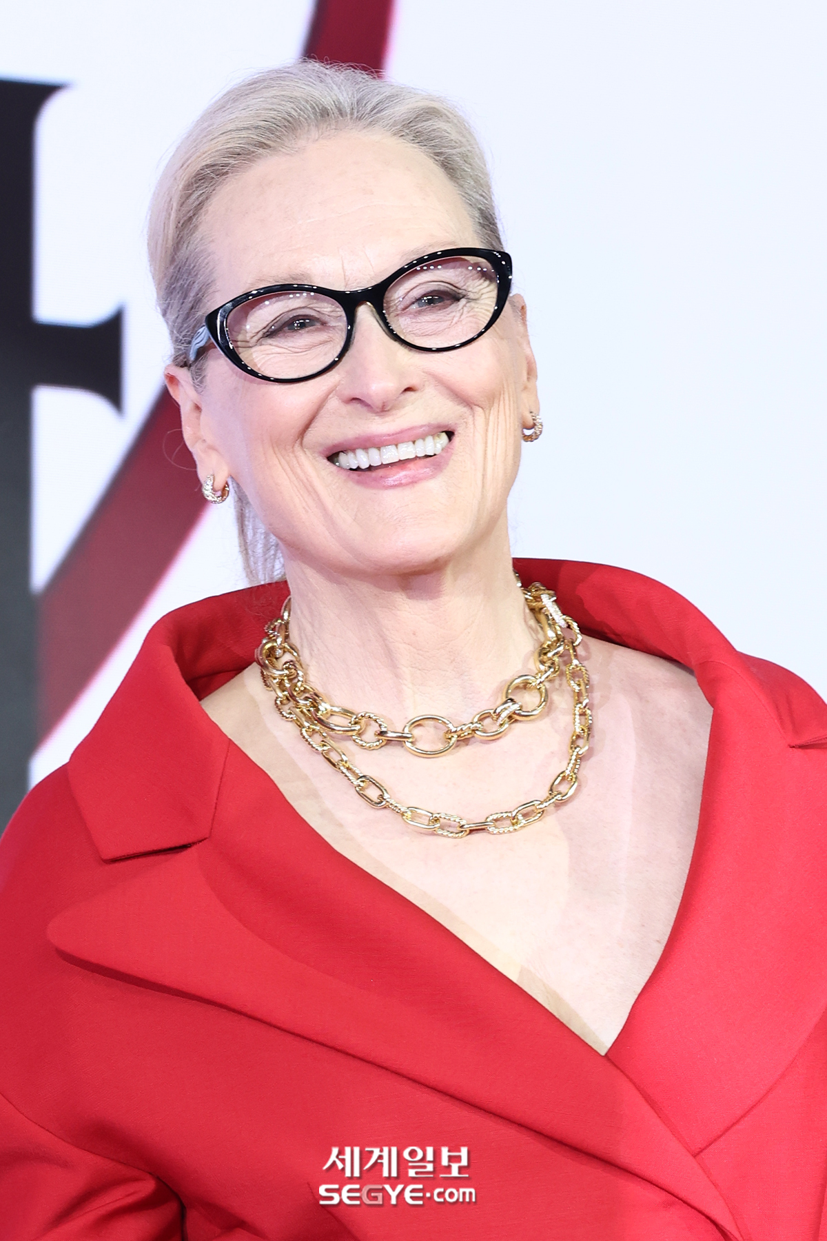 배우 메릴 스트립이 8일 서울 종로구 포시즌스 호텔에서 열린 영화 ’악마는 프라다를 입는다 2’의 내한기자간담회에 참석해 포즈를 취하고 있다.