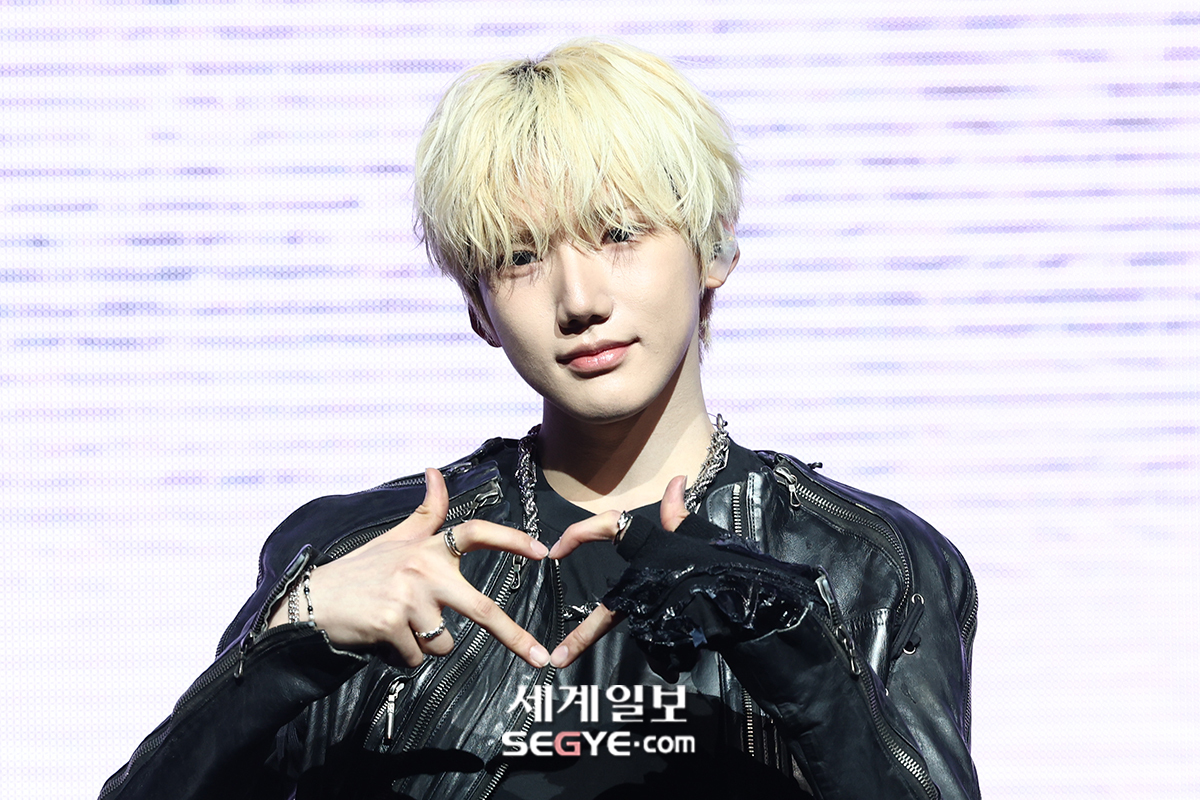 가수 김재중이 제작한 첫 보이그룹 키빗업(KEYVITUP)의 현민이 8일 서울 마포구 합정동 메세나폴리스에서 열린 데뷔 첫 EP 앨범 ‘키빗업’의 쇼케이스에 참석해 포즈를 취하고 있다.