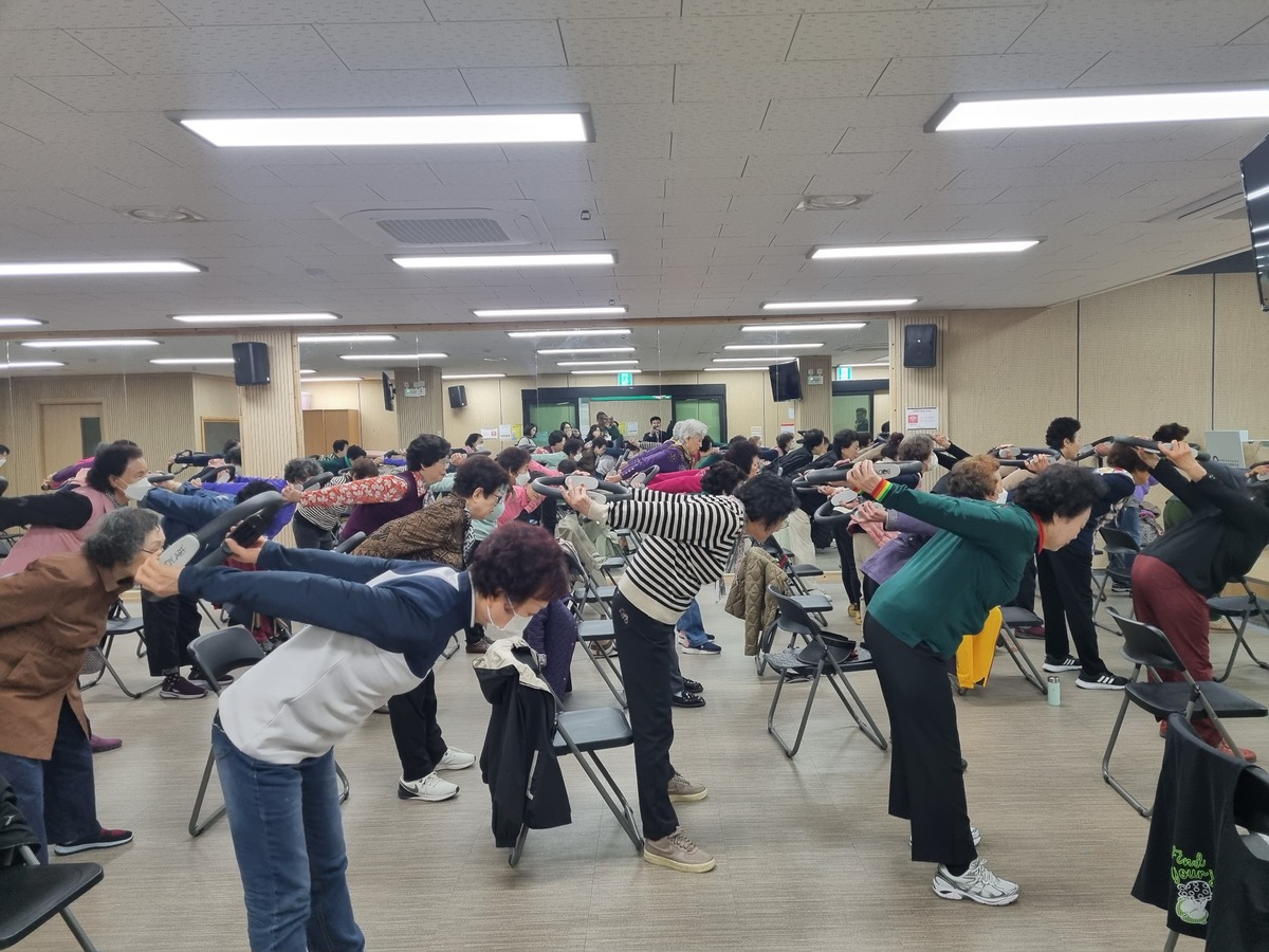 다른 활동실에서는 노인 40여명이 함께 ‘관절튼튼운동교실’ 활동에 참여했다. 주 3회 열리는 해당 활동은 대부분 70세 이상 노인이 관절 건강을 위해 운동한다. 이날도 강사의 구호와 음악 소리에 맞춰 어르신들은 땀을 흘렸다. 오남춘(83)씨는 “평일에는 복지관에 매일 방문해 여러 프로그램을 즐긴다”며 “이곳에서 친구도 만나고 즐겁다. 외로울 틈이 없다”고 웃었다.