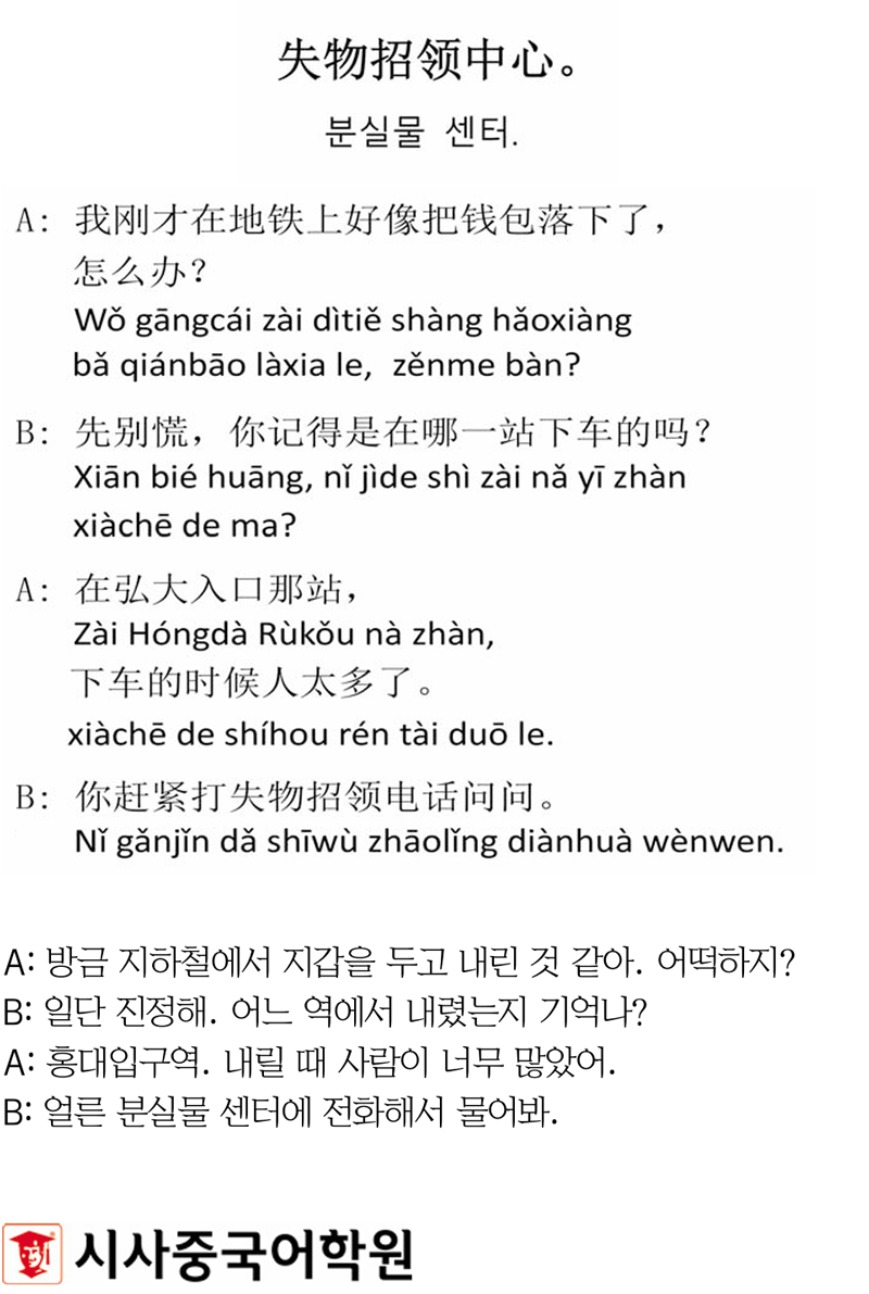 [시사중국어학원의 리얼 중국어 회화] 분실물 센터.