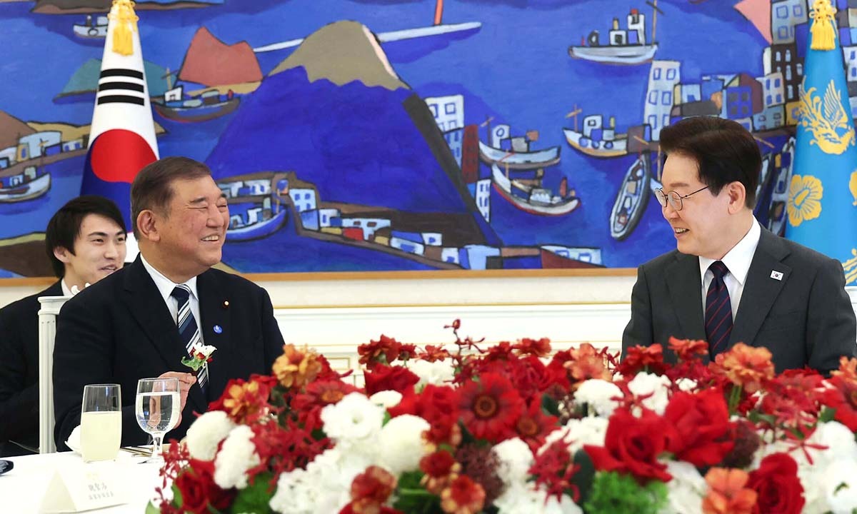 이재명 대통령이 8일 청와대에서 진행된 이시바 시게루 전 일본 총리와의 오찬 회동에서 환담하고 있다. 이 대통령은 이시바 전 총리에게 “재임 중일 때 한·일 관계가 상당히 많이 안정되고 그 후로 한·일 협력도 상당히 잘 되고 있는 상태라 참으로 감사하게 생각한다”고 말했다.