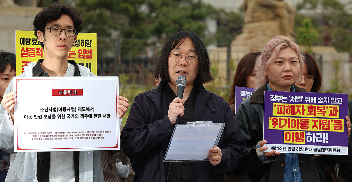 이들은 촉법소년 연령 하향에 객관적 근거가 없다며 “정부는 지난해 12월 말 제3차 아동정책 기본계획에서 모든 아동의 건강한 성장·발달 지원, 도움이 필요한 아동에 대한 국가책임 강화, 아동 참여를 통한 아동 권익 내실화를 제시했다”며 “대통령께 묻는다. ‘모든 아동’, ‘도움이 필요한 아동’, ‘참여를 통해 권리를 보장받아야 할 아동’에 촉법소년은 포함되지 않는가”라고 지적했다.